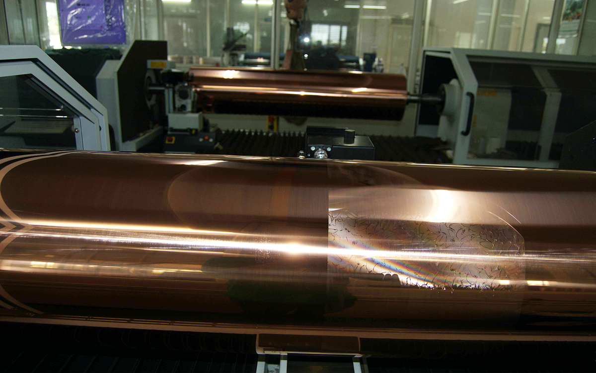 Chrome plating of the engraved cylinders is next step wich gives solidity to engraved copper surface to withstand the aggression of ink, chemicals & doctorblade corrosion. The optimum micro cracks ensures easy doctor blade lubrication for long life of cylinders.